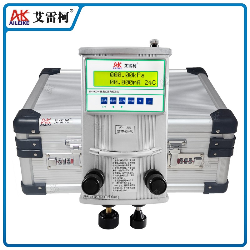 • ZC-3000-4 便携式压力校准仪为交直流两用的便携式仪表,在测量压力的同时,可测量电流,同时在LCD上显示出来,并备有24VDC输出,前面板上安装有打压手泵。高性能的微处理器对仪表零点和线性进行连续修正,保证仪表长时间内零点和准确度具有良好的重复性和稳定性,测量准确度高。采用高性能CPU和温度传感器对仪表温度漂移进行自动补偿,保证准确度下的使用温度范围宽。功耗低。电池充满后,保证准确度下的连续工作时间长。恒流充电,具有电池电压的过充电、欠压自动关机及自动保护功能,保证电池不因过充电或欠压而损坏,电池使用寿命长(因长时间不用,隔三个月充电一次)。微功耗的欠电压自动保护功能,保证仪表即使操作者因故而连续开机过长也不会因欠电压而损坏电池。